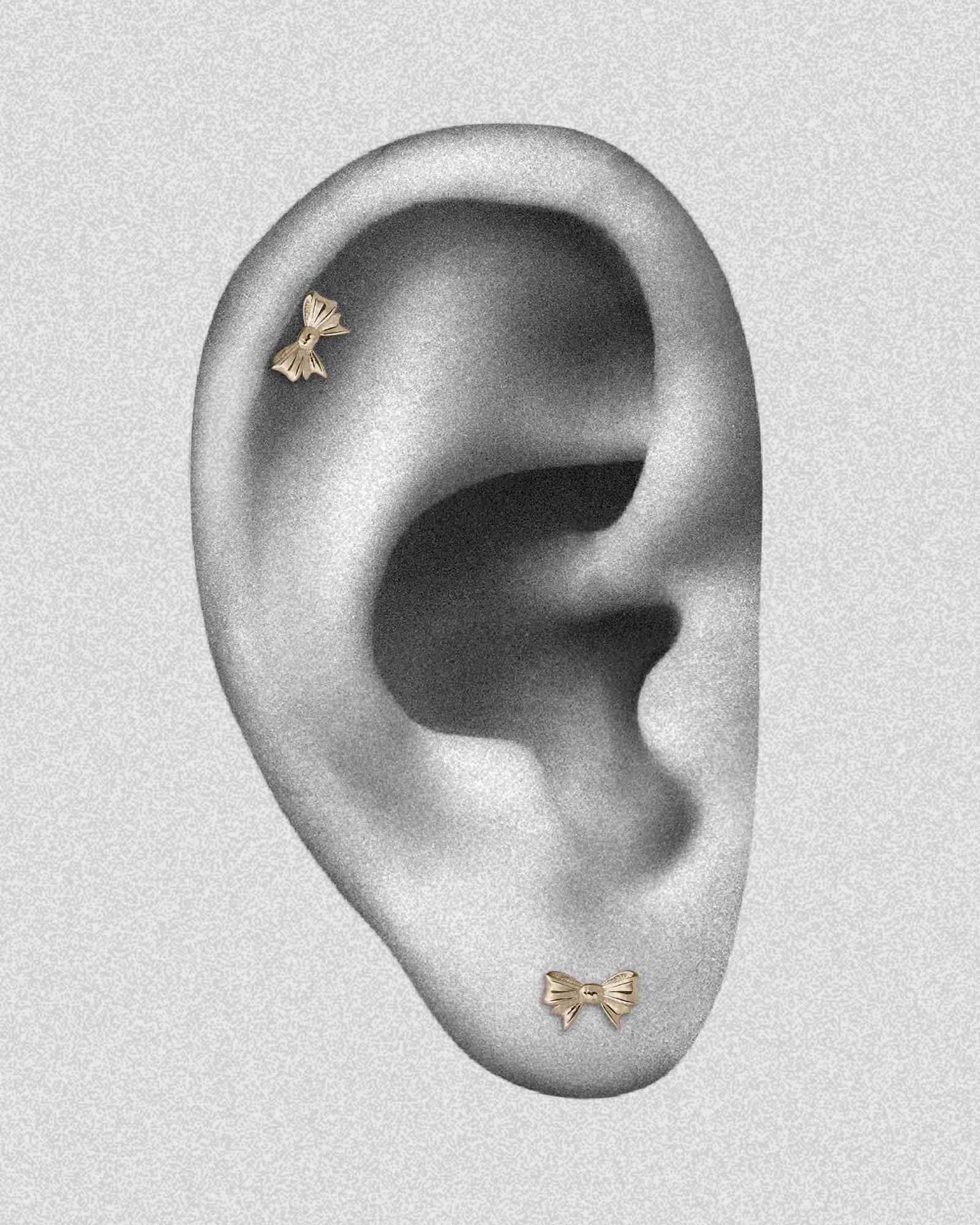A 14K Gold threadless end casted to the classic form of a satin ribbon bow. Demi-fine alternative jewelry to adorn your soul.