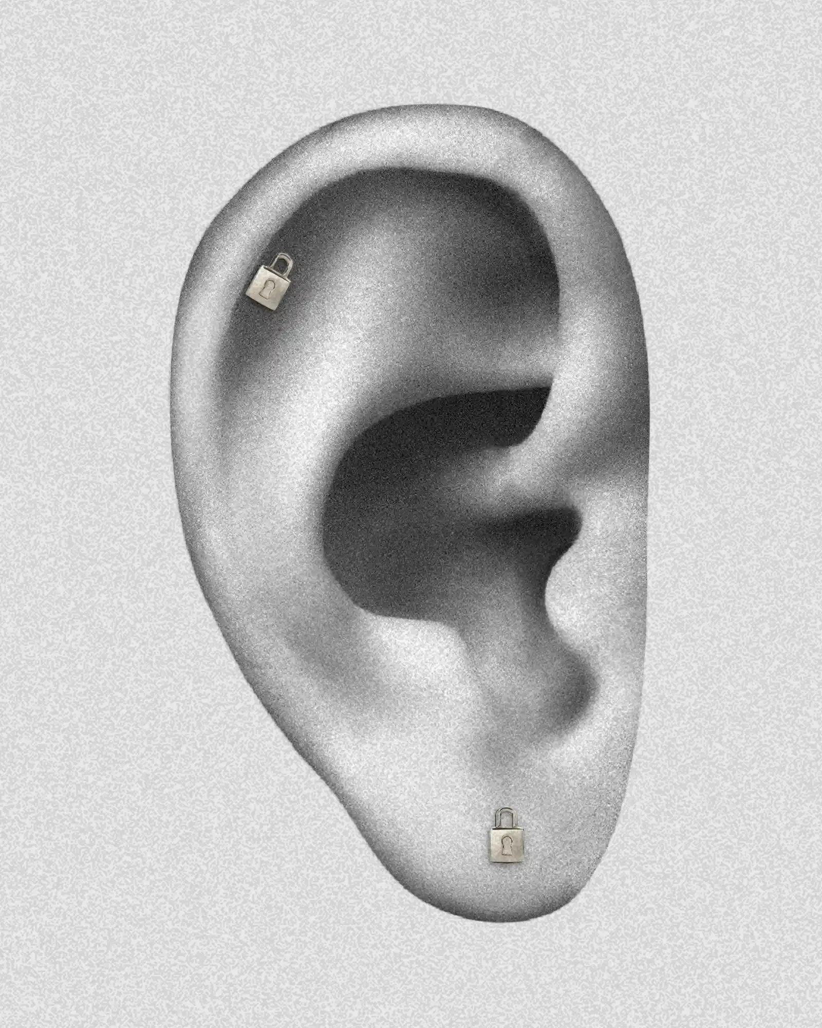 A solid 14K Gold threadless end of a padlock with a keyhole at its centre. Demi-fine alternative jewelry to adorn your soul.