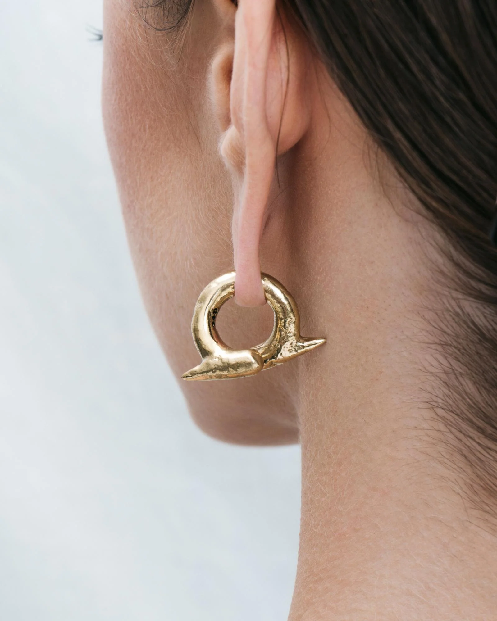 Neolithic mineral sloped and fused by sporadic geological junctions to spike fossilised opulence. Open-ended hangers adorned with protruding spikes at each end. Forged for all genders and expressions.