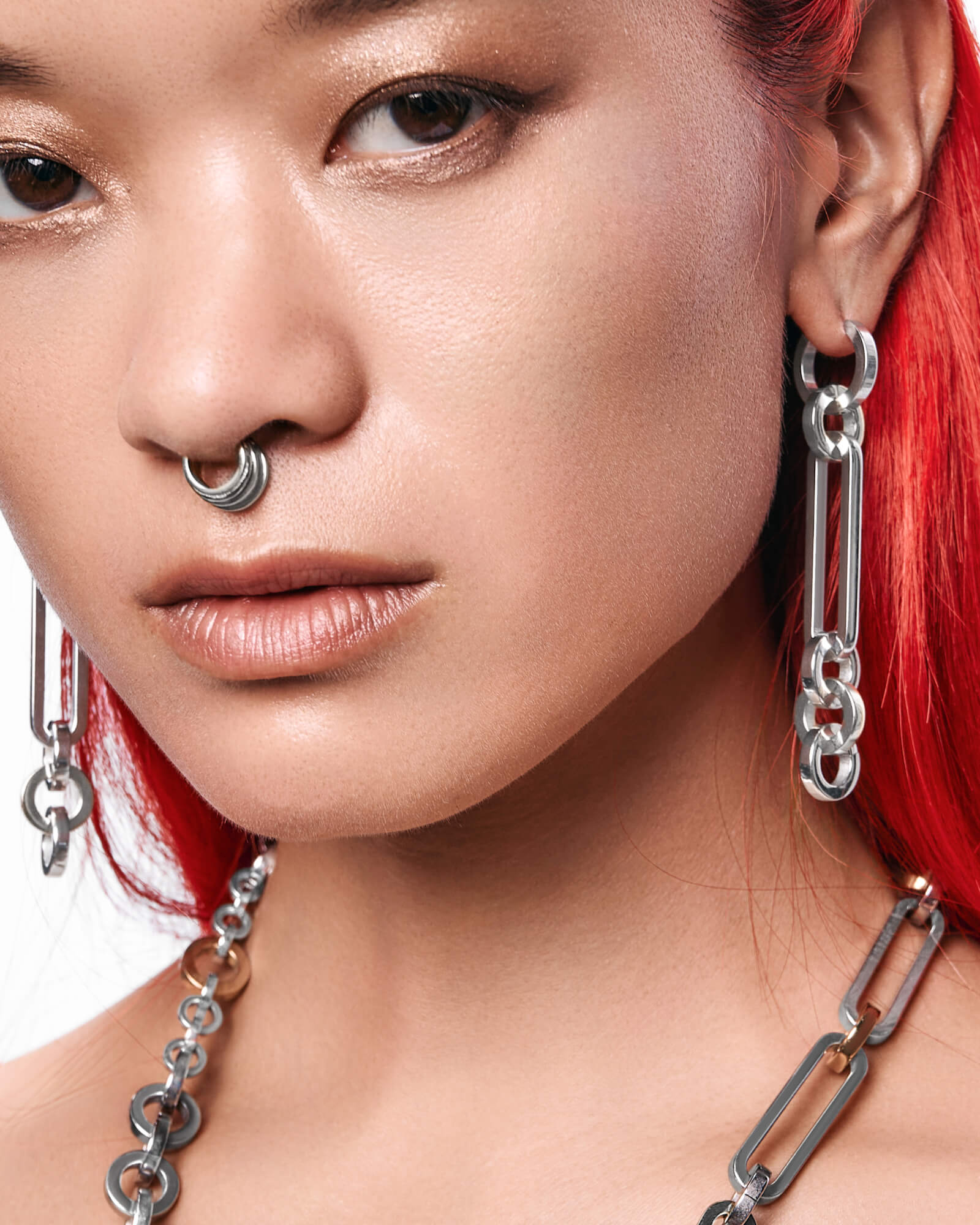 Duality entwined, chaining two truths—earrings that connect contrasting perspectives.