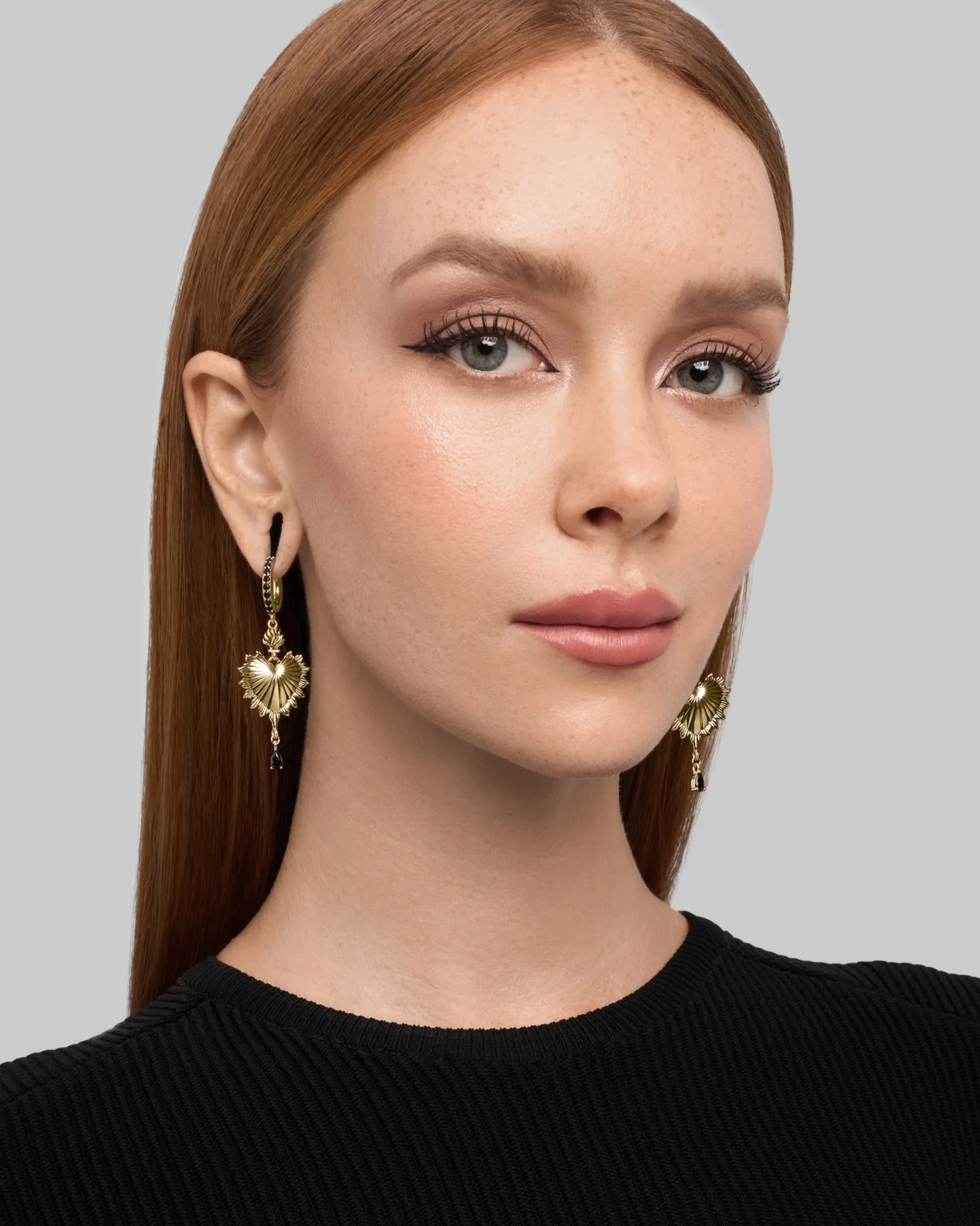 Demi-fine, embellished hangers featuring our iconic sacred heart anchored by an ebony gem. Made of 925 sterling silver. Shop The Sacrament series. Part of the Eternal Amour collection.