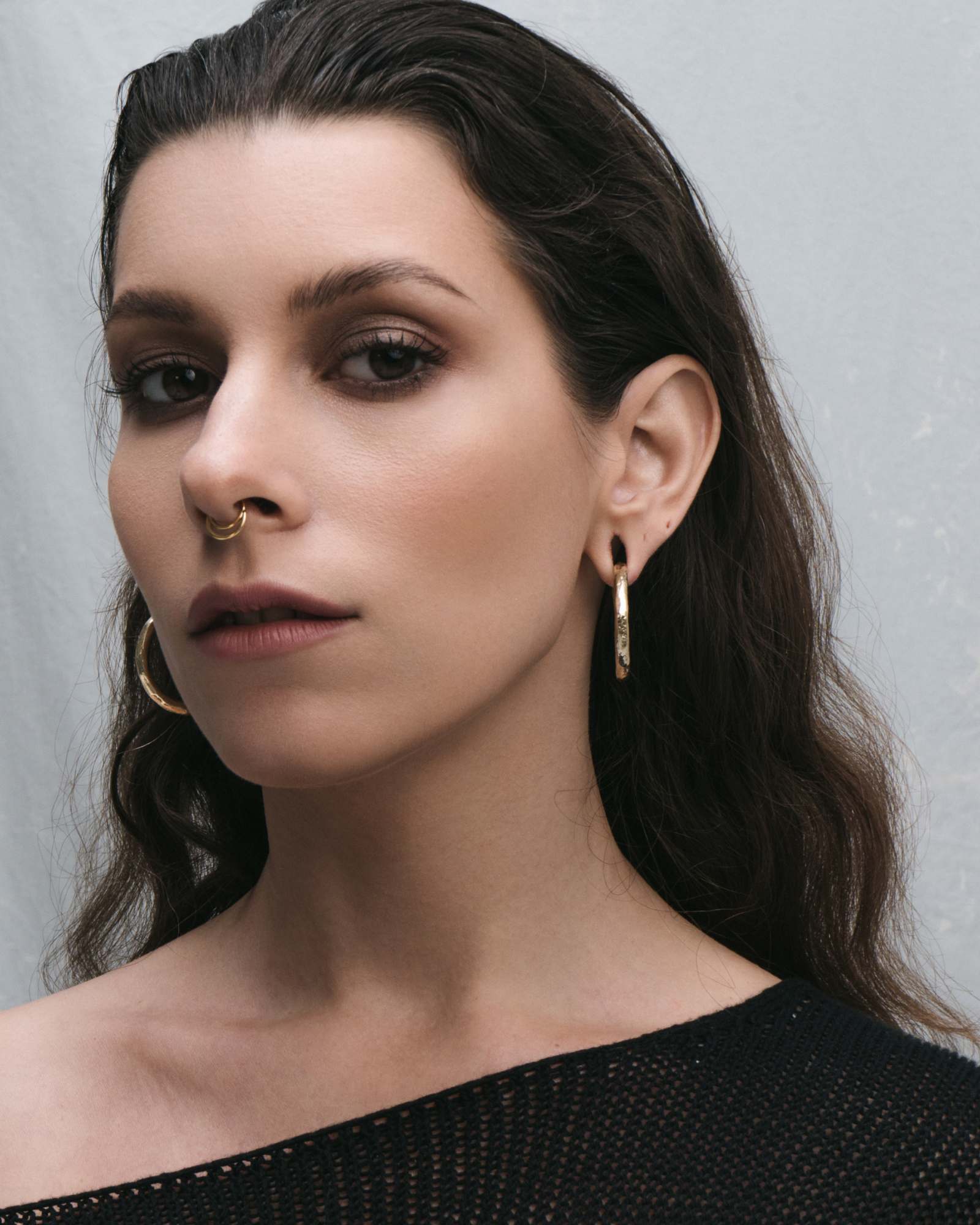 Synthesis — Where elements merge, creation emerges. A fusion of ruggedness and refinement, our Synthesis Hangers No. 3 exude a polished, hand-forged, and uniquely tactile texture, with a custom-made spring-loaded mechanism designed for effortless opening and firm fastening to keep charms secure. Made of 316L stainless steel, providing a tarnish-free, hypoallergenic, waterproof, and durable adornment.