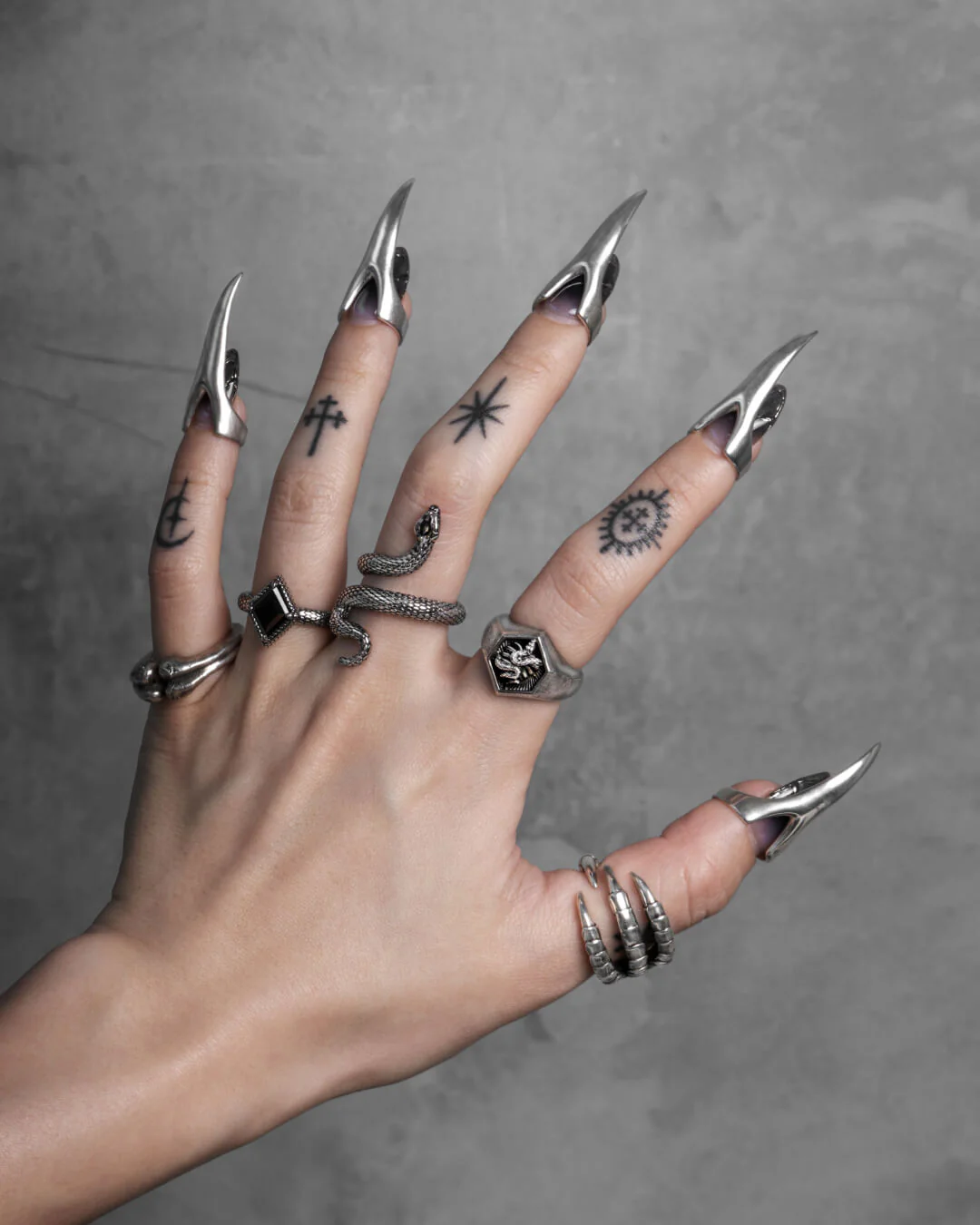 Detailed, demi-fine and forged for all genders and expressions, this 925 sterling Silver signet features a hexagonal signet face that bears a snake coiled around a swathed heart, diffusing rays of light.